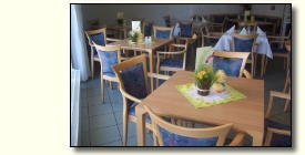 In der Einrichtung befindet sich eine Cafeteria, die ihre Leistungen Frühstück, Seniorenmittagstisch, Nachmittagskaffee für Bewohner, Personal und Gäste anbietet.